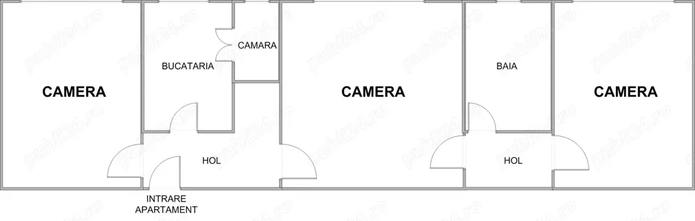 structurat astfel: HOL [ 1 ] ACCES, LIVING, BUCATARIE CU CAMARA, BAIE,